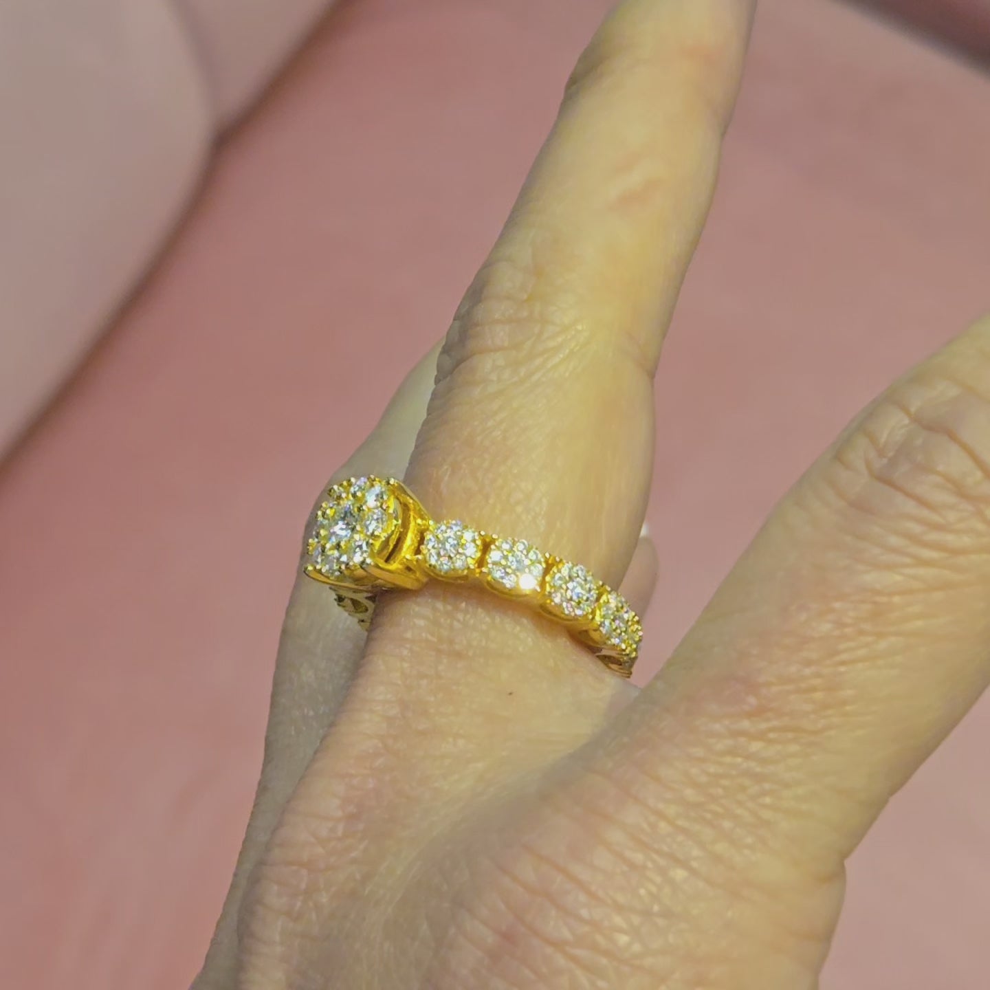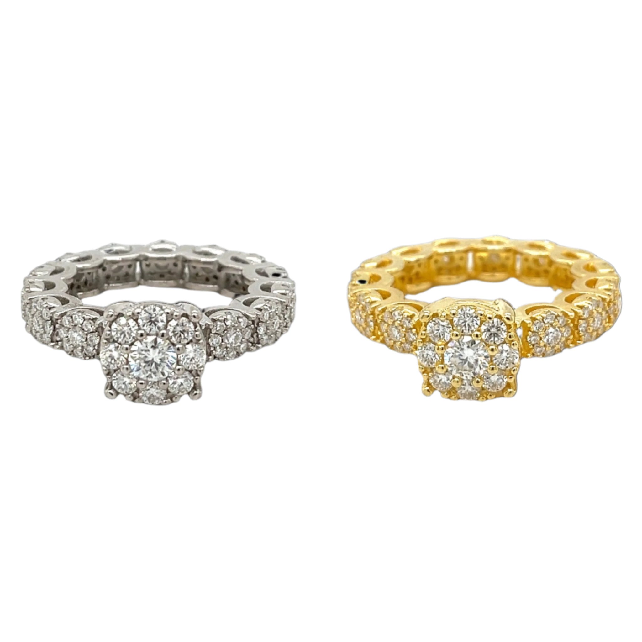 This exquisite engagement ring is crafted from 925 sterling silver and features a stunning gold plating that adds a touch of warmth and elegance. At its center is a dazzling approx.1.76CT for sizes 6 & 7 & 1.84CT for sizes 8 & 9, with Round lab-created moissanite stone, surrounded by a halo of smaller moissanite stones that enhance its brilliance. The intricate band showcases a series of sparkling moissanite accents, creating a radiant display of light from every angle. The design combines classic elements with a modern twist, making it a perfect symbol of love and commitment. Ideal for that special moment, this ring embodies both beauty and sophistication, making it a cherished piece for years to come. Colors: White Silver, White 14K Yellow Gold Plated. Worldwide Express Fast shipping !