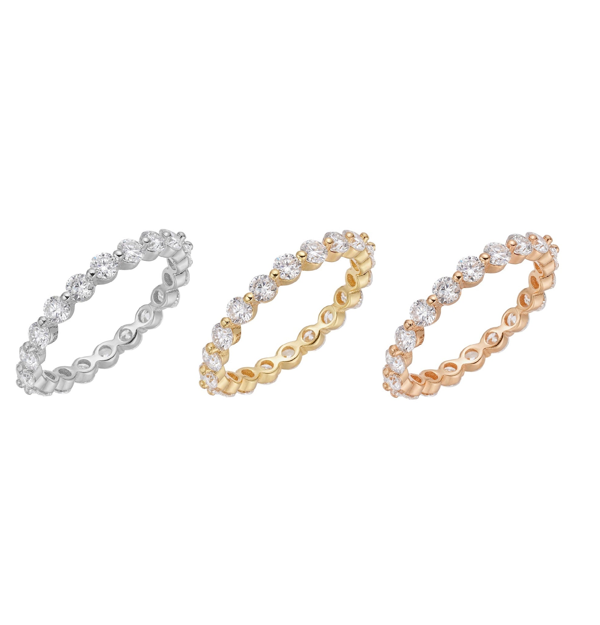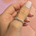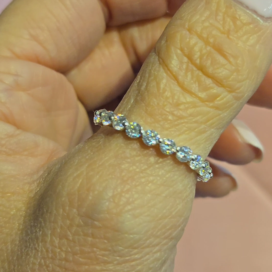 Elegant ring is crafted from 925 sterling silver and features a classic design adorned featuring with approx. 2.02CT for #8, 2.12CT for #9, 2.22CT for #10 & #11 & 2.32CT for #12 of Roundlab-created moissanite stones. The band showcases a continuous line of dazzling round stones, set in a stunning shared-prong style that maximizes sparkle and brilliance. Its delicate yet eye-catching appearance makes it a perfect stacking ring or a standalone piece for everyday wear. The polished silver finish adds to its overall sophistication, making it an ideal choice for those who appreciate timeless beauty and understated elegance in their jewelry collection. Colors: White Silver, 14K Gold Plated & 14K Rose Gold Plated. Worldwide Express Fast shipping !