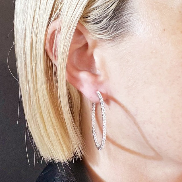 S925 Lab-Created moissanite approx. 3.32CT Hoops Earrings Sterling Silver 40mm Hoops Earrings Color: White Silver Rhodium Plated for increased durability.