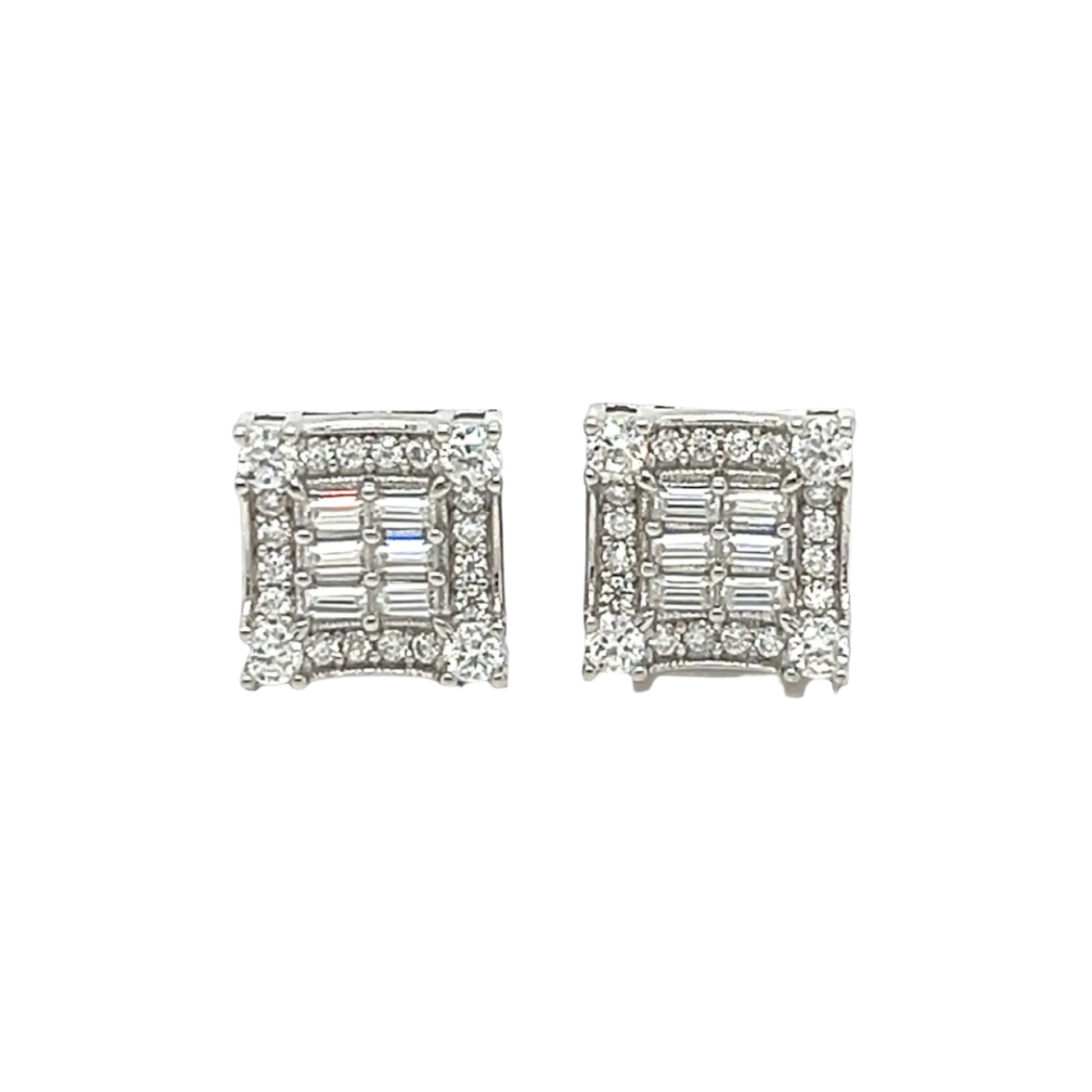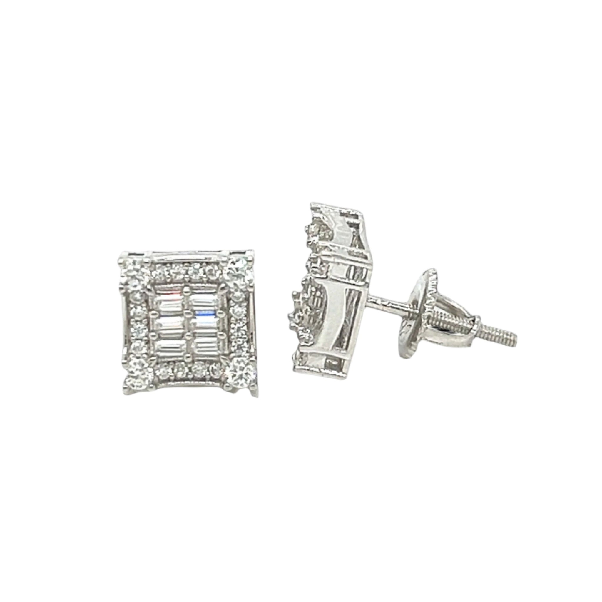 Stunning 925 Sterling Silver Lab-Created Moissanite Square Screw Back Earrings : Elevate your style with this timeless beauty. Featuring approx. 0.78CT of Lab-Created Moissanite Baguette and Round Shaped Stones. Featuring High Quality of Sterling Silver, it adds a touch of glamour to any look. Color: White Silver Rhodium Plated. Worldwide Express Fast shipping !