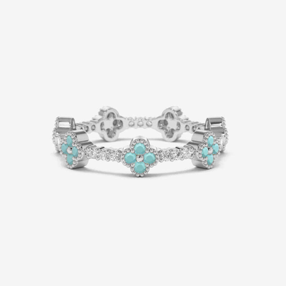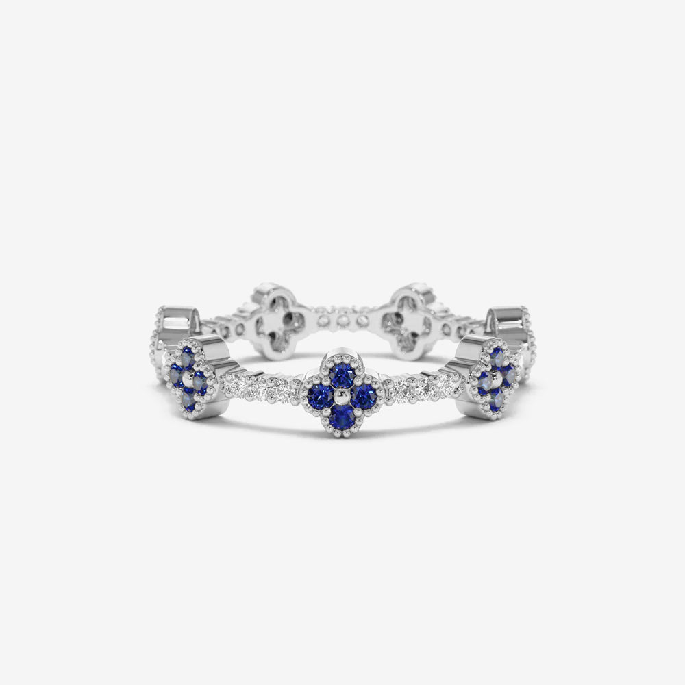 Delicate eternity ring crafted in genuine sterling silver and set with floral-inspired cubic zirconia accents. A refined design with vibrant color and sparkle. A versatile piece that adds personality while remaining easy to style.